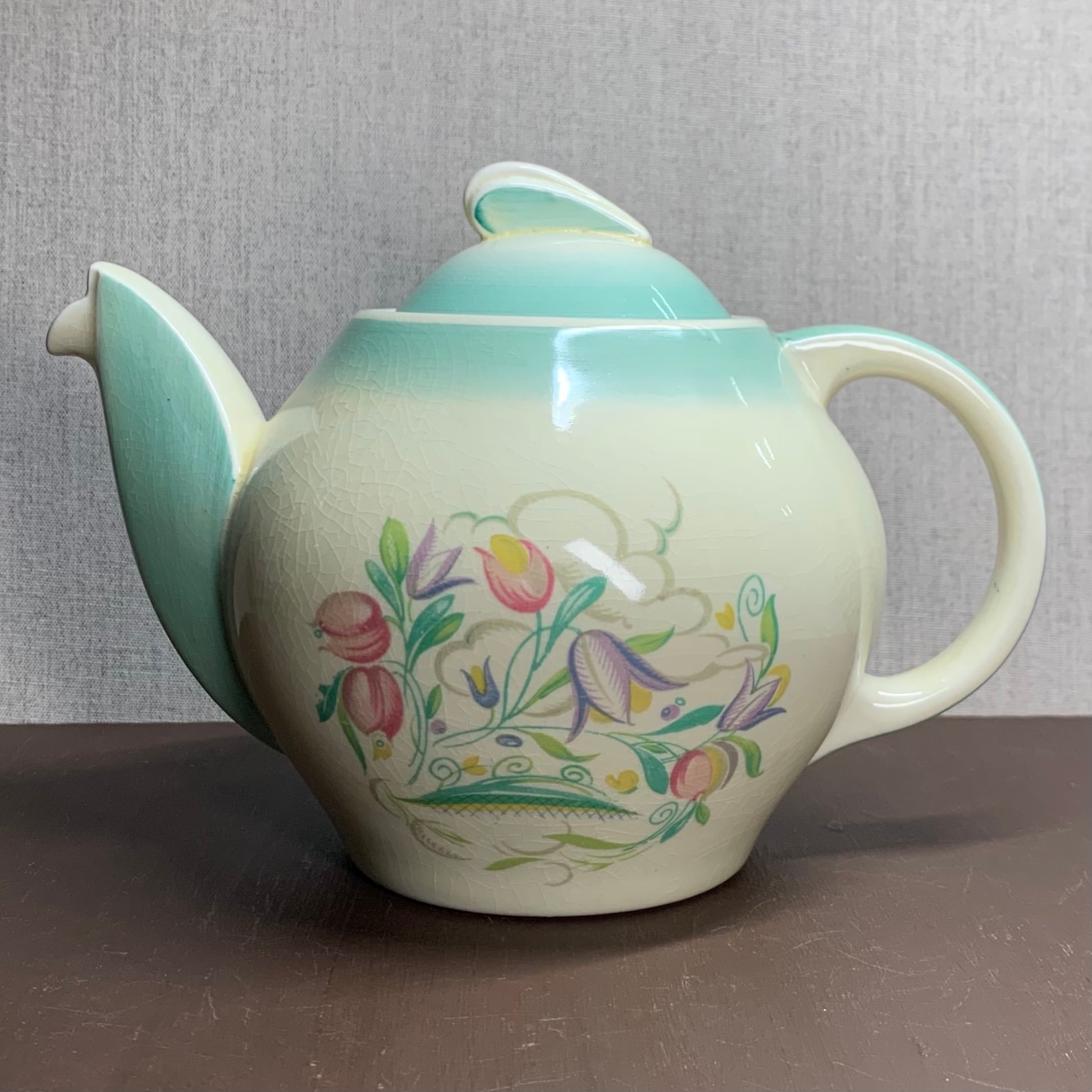 スージークーパー「ドレスデンスプレイ ポット(グリーン)」イギリス製 ヴィンテージ susie cooper