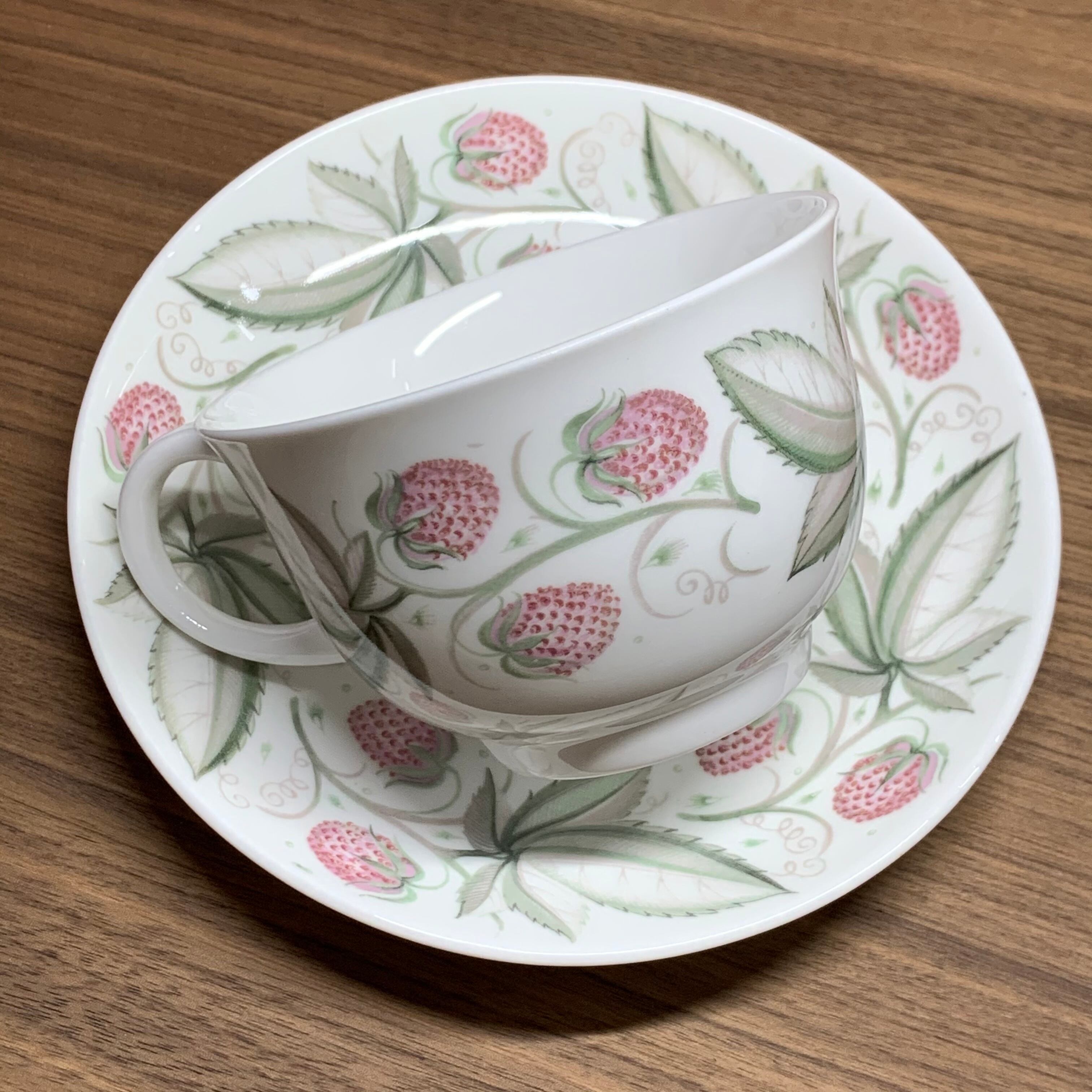 スージークーパー「ワイルドストロベリー カップ&ソーサー」イギリス製 ヴィンテージ susie cooper A