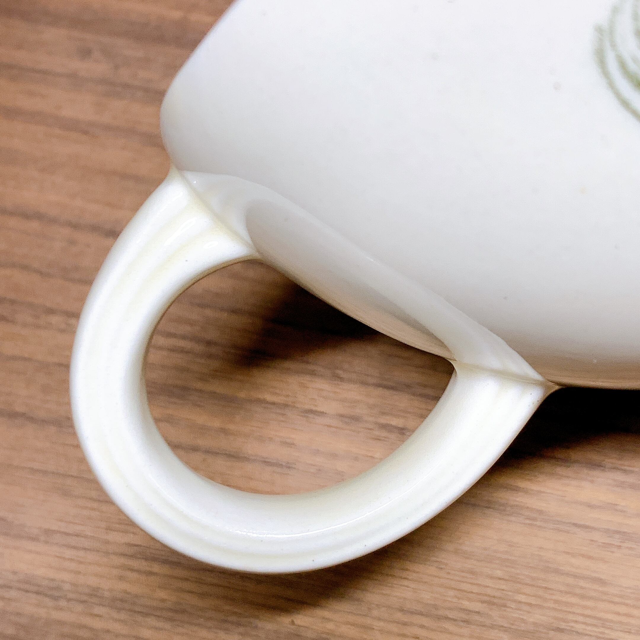 持ち手の亀裂は釉薬の下になりますので触ってみても引っかかりはありません。