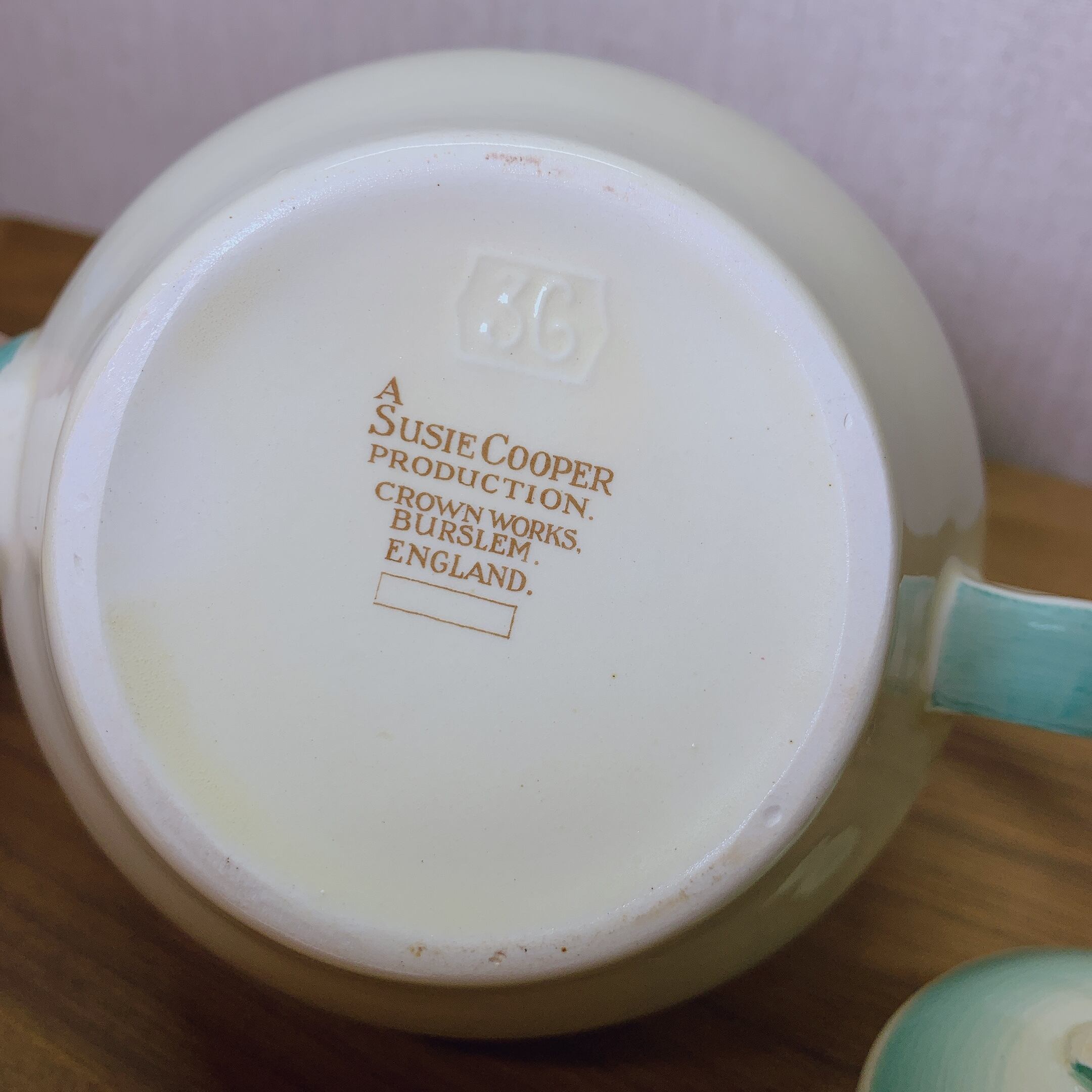 スージークーパー スワンシースプレイ ポット(グリーン) イギリス製 ヴィンテージ susie cooper